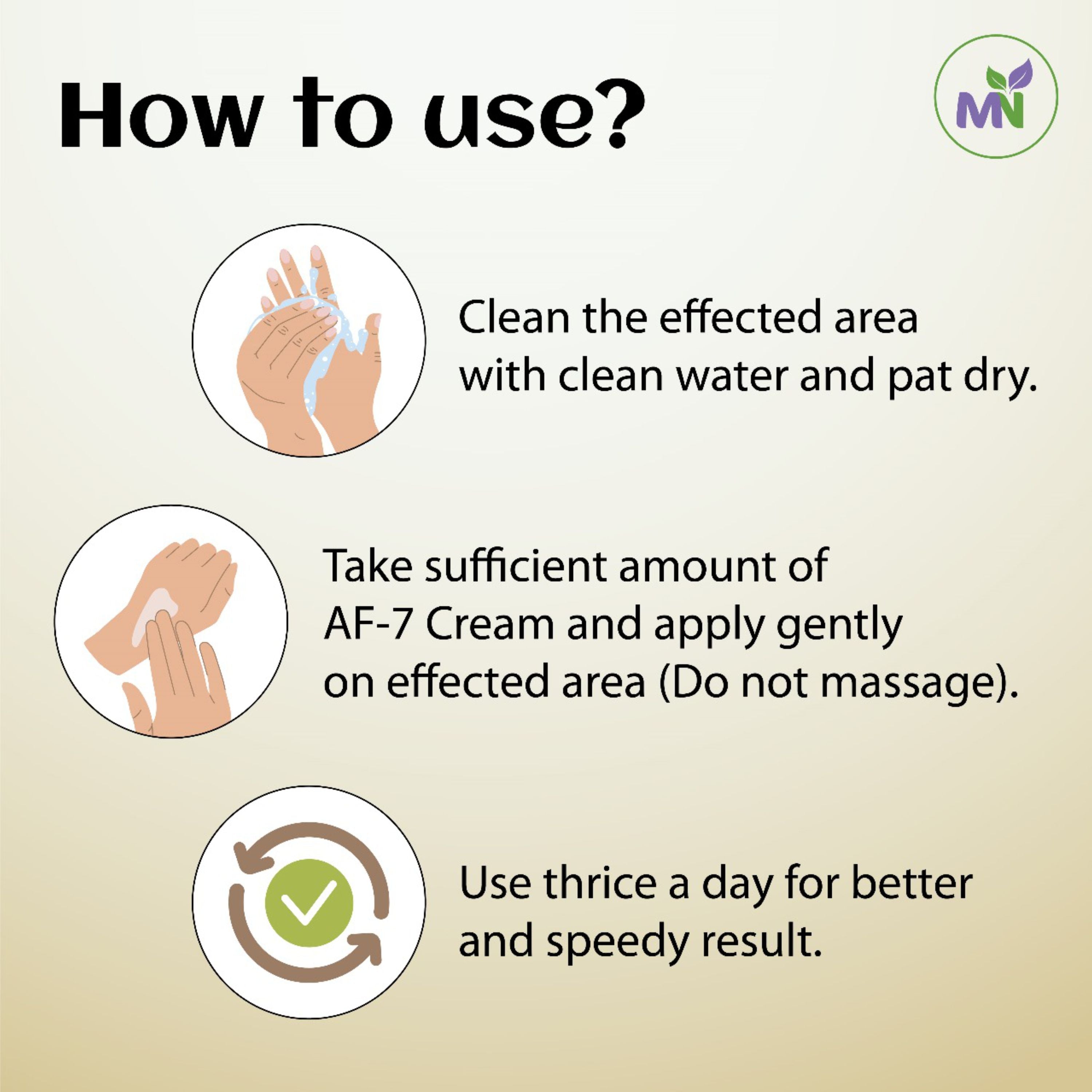 Apply a small amount of cream on the affected area 2-3 times a day after cleaning and drying the skin. Use regularly for best results. Avoid contact with eyes.
