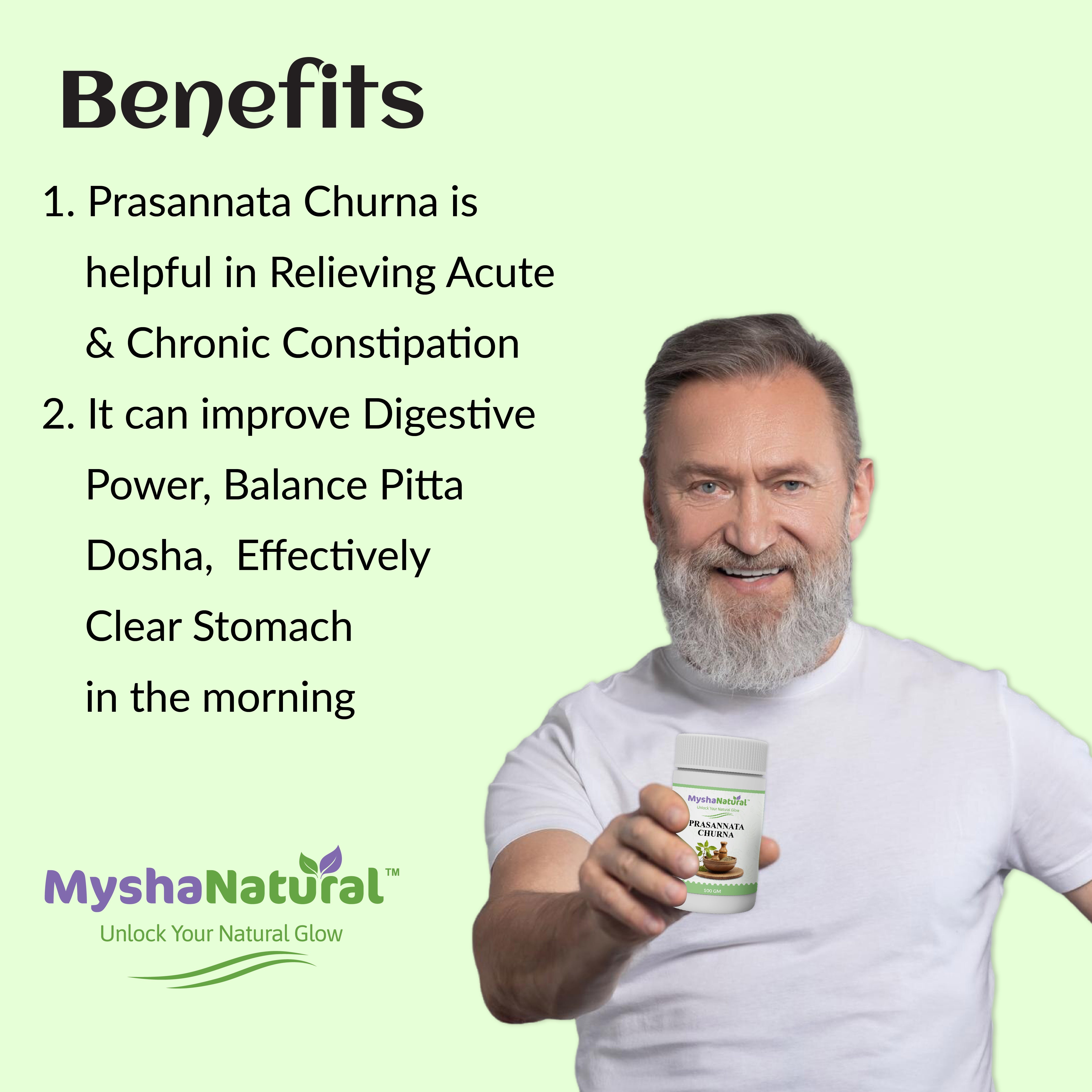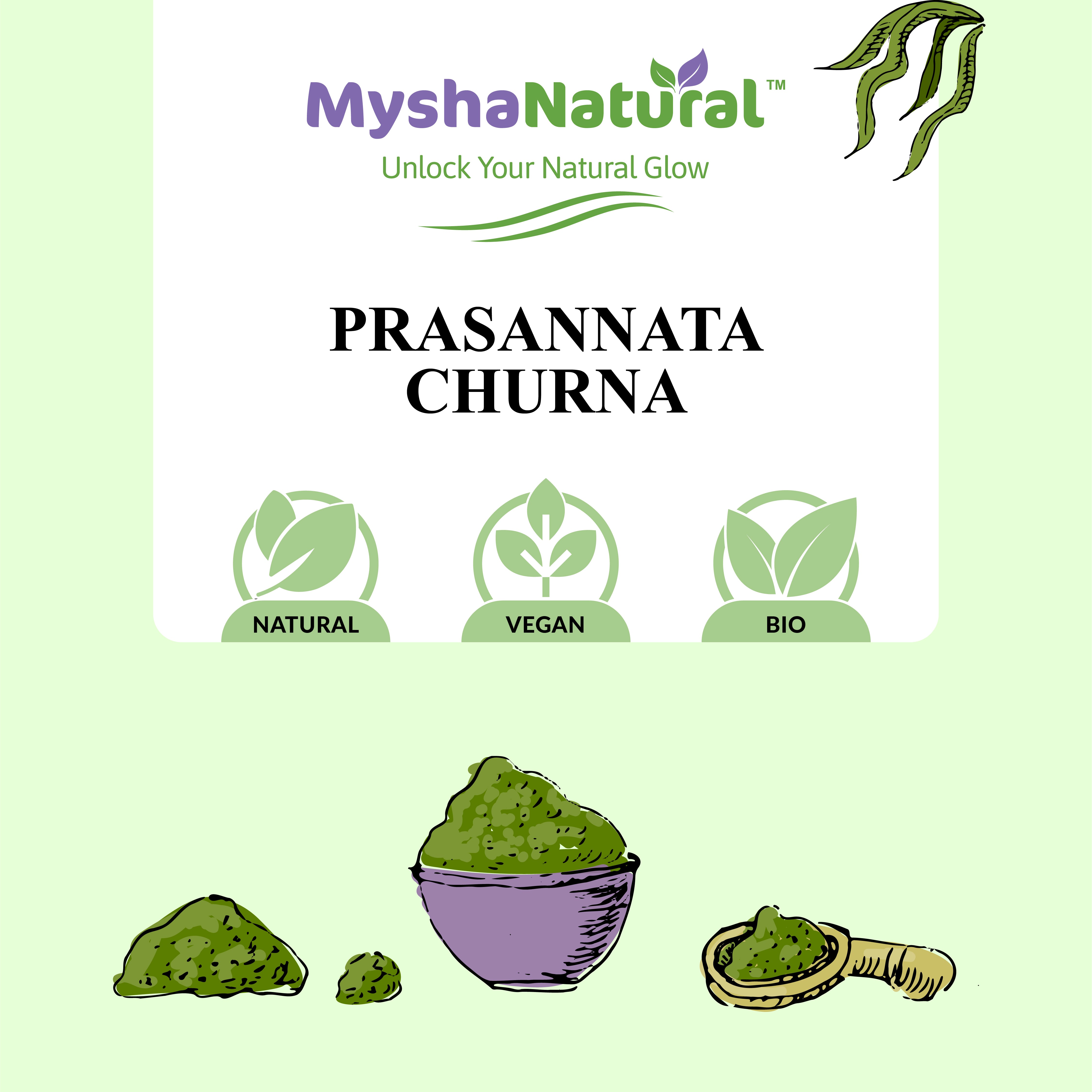 MyshaNatural™ Prasannata Churna is a traditional Ayurvedic formulation designed to cleanse the body, support digestion, and boost overall wellness. Crafted from time-tested herbs, this herbal powder promotes inner balance and vitality without any synthetic additives.