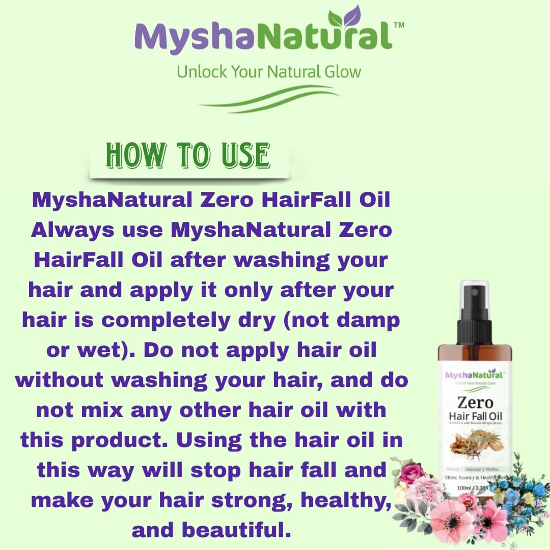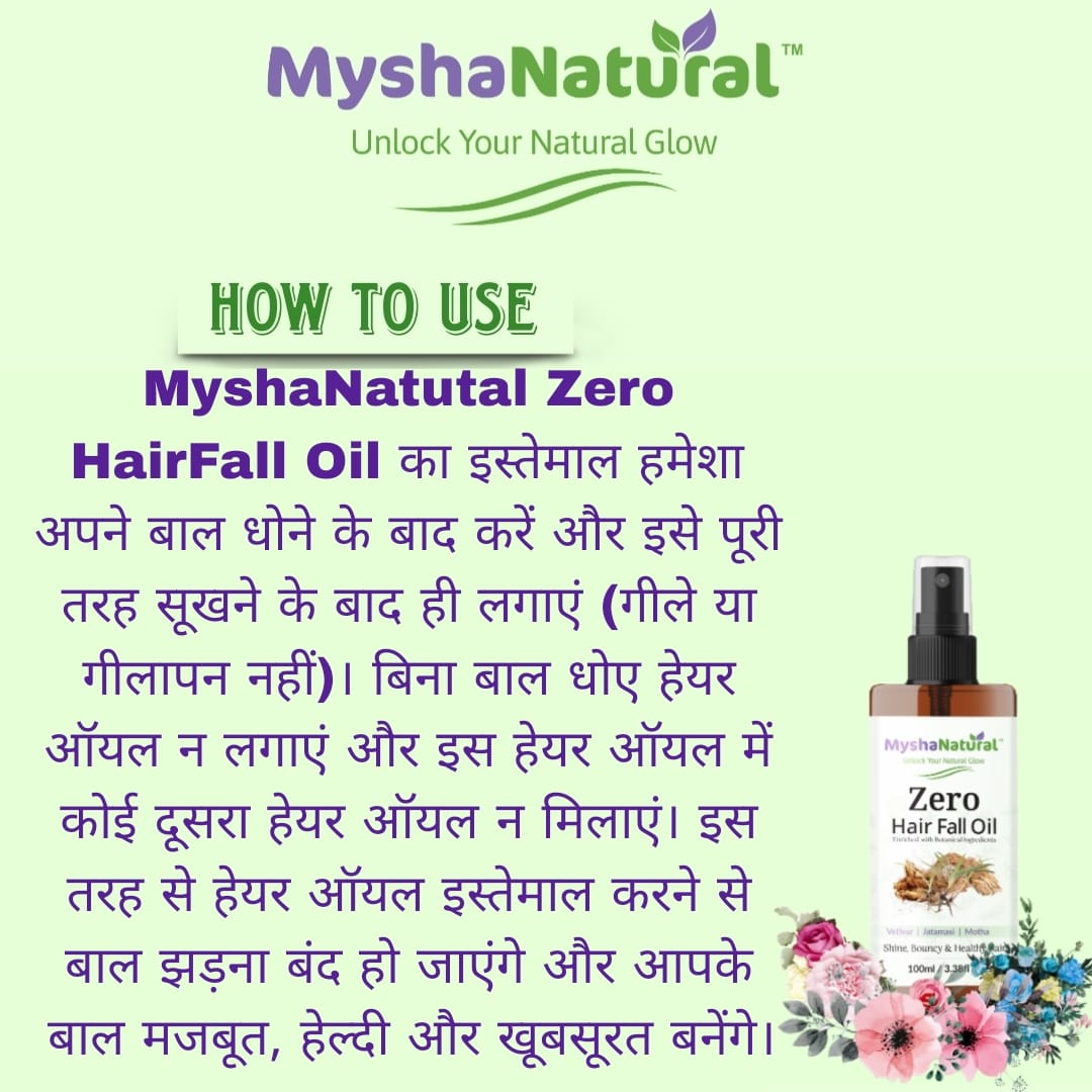 Say goodbye to hair breakage and thinning with MyshaNatural™ Zero Hair Fall Oil. Powered by ancient Ayurvedic herbs like Vetiver, Jatamansi, and Motha, this lightweight, non-sticky oil deeply nourishes the scalp, strengthens hair roots, and boosts natural shine and bounce.